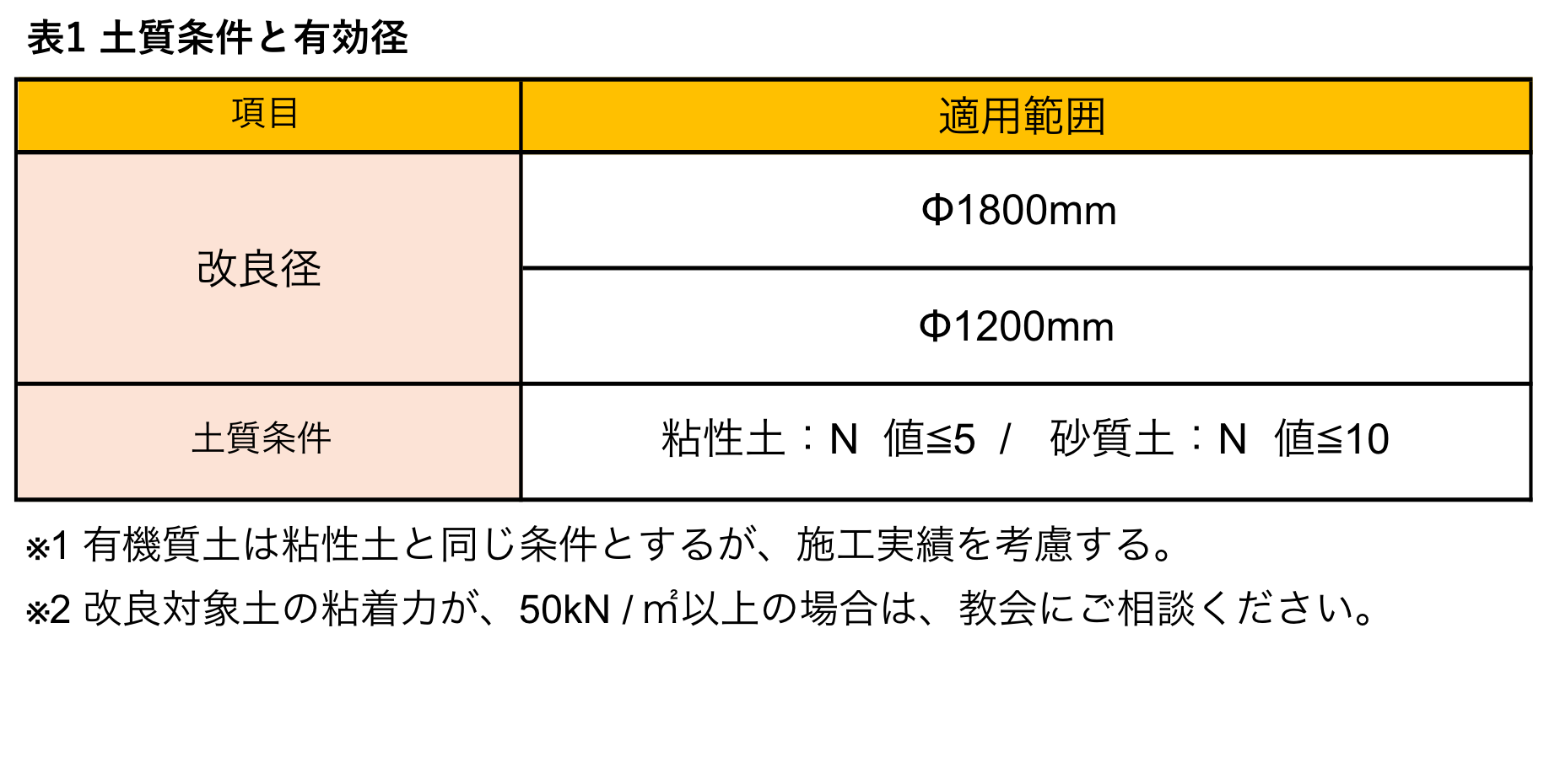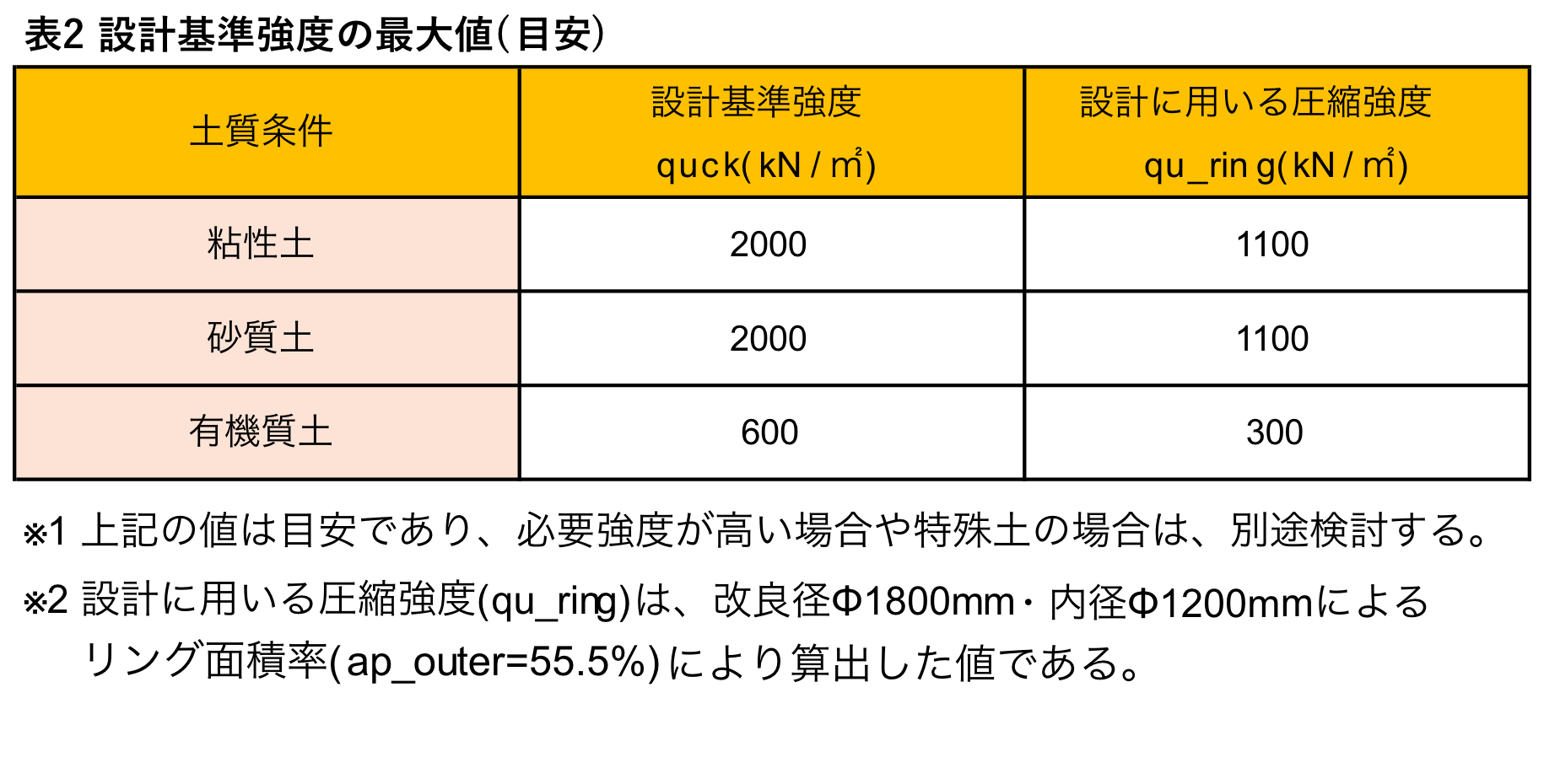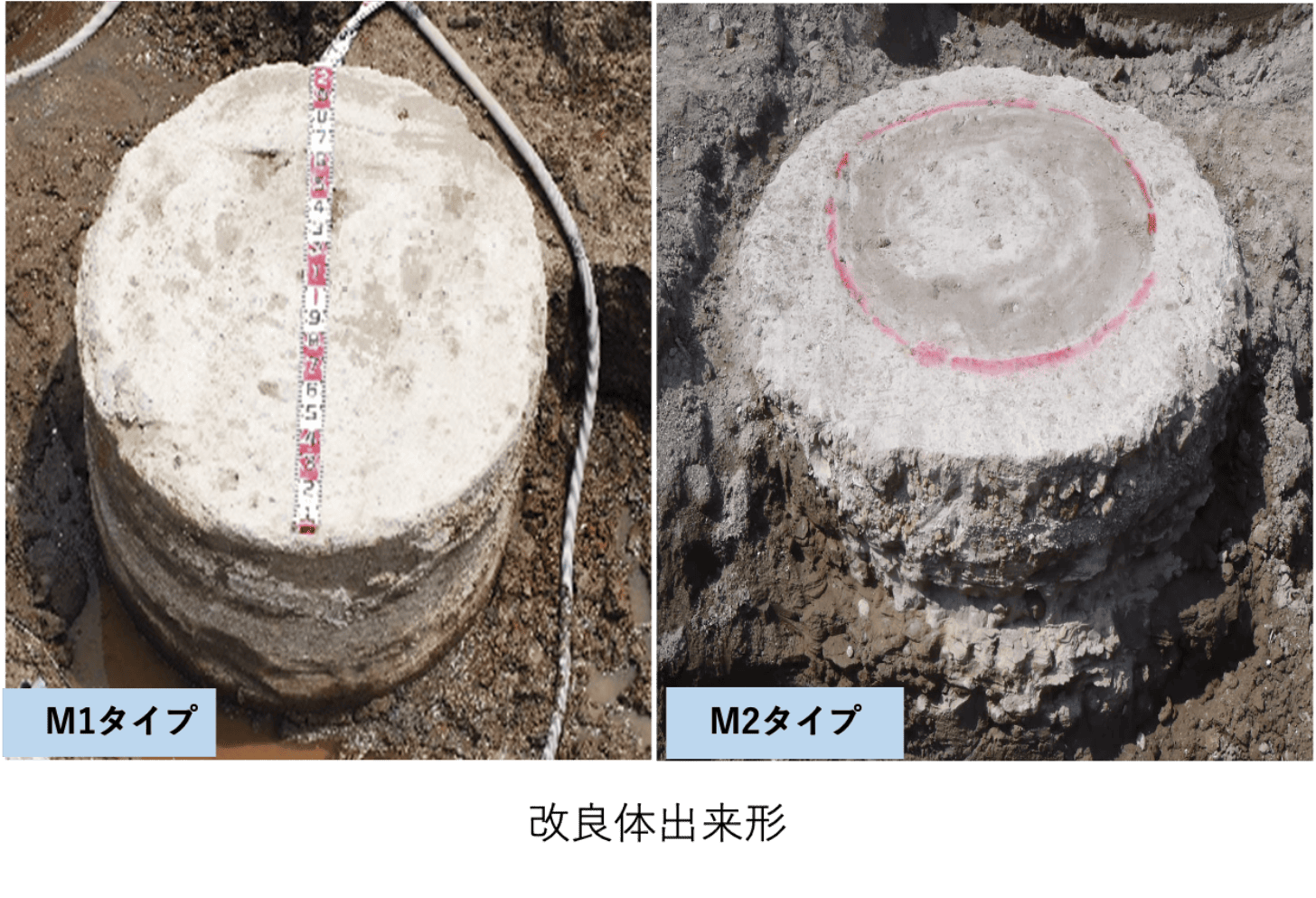 高強度外周部と低強度中央部の複合断面による大口径円筒状改良体(改良径φ1800mm)を小型地盤改良機にて造成できます。 -
